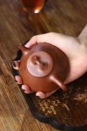 【容量】220cc 【作者】王后新 - 實力派藝人 這款子冶架子搭的非常周正,挺拔間見筋骨,壺氣勢沉穩,大氣端莊之美油然然而生! 石瓢 · 壺型簡介![]() 石瓢最早稱為石銚,銚在辭海中釋為吊子一種有柄,有流的小烹器。銚從金屬器皿變為陶器,最早見于北宋大學士蘇軾《試院煎茶》詩:“且學公家作名欽,磚爐石銚行相隨”。蘇東坡把金屬“銚”改為石“銚”,這與當時的茶道有著密切的關系。蘇東坡貶官到宜興蜀山教書,發現當地的紫色砂罐煮茶比銅、鐵器皿味道好,于是他就地取材,模仿金屬吊子設計了一把既有“流”(壺嘴),又有“梁”(壺提)的砂陶之“銚”用來煮茶,這“銚”也即后人所稱的“東坡提梁”壺,這可謂最早的紫砂“石銚”壺。從留傳于世的石銚壺看,至陳曼生、楊彭年時期,已有了很大的變化,更趨向文人化、藝術化。 “曼生石銚”主要特色是上小下大,重心下垂,使用穩當,壺嘴為矮而有力的直筒形,出水暢順,壺身呈“金字塔”式,觀賞端莊。“曼生石銚”與“子沾石銚”相比,雖同為彭年所制,但前者更顯飽滿而豐潤,后者則剛烈而古拙,這可能是因人的個性而在壺的藝術上表現。那么,紫砂“石銚”何時稱“石瓢”呢?這應從顧景舟時期說起,顧引用古文“弱水三千,僅飲一瓢”,“石銚”應稱“石瓢”,從此相沿均稱石瓢壺。 底槽青· 泥料簡介![]() 簡介:底槽青,產于江蘇宜興黃龍山系,紫泥原礦大致可分:頭槽、二槽青、底槽青等三類,本名泥產于紫泥最底層,質量之佳,為歷代陶人推崇之首,亦為數百年來經典名器,及已故顧景舟大師最鍾愛之名泥;此泥礦名稱,因宜興產地方言沿用已久,為恐溷淆,故用其音直譯文字,以“底槽青”名之。最早產于黃龍山四號井,后來是黃龍山五號井和臺西礦。由于產于紫砂最底層,質地特純,泥質細膩、成色穩重,呈棕色,在近代制壺名家廣泛使用。 猜您喜歡