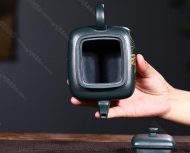 獨家民國綠泥渾方器【清池秋影】形似傳爐,整個壺身呈飽滿的圓潤輪廓,而流與把皆呈四方形,方中有圓,400CC極具趣味和思想。壺身刻繪滿塘清荷,香氣四溢!430006